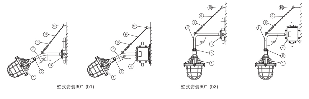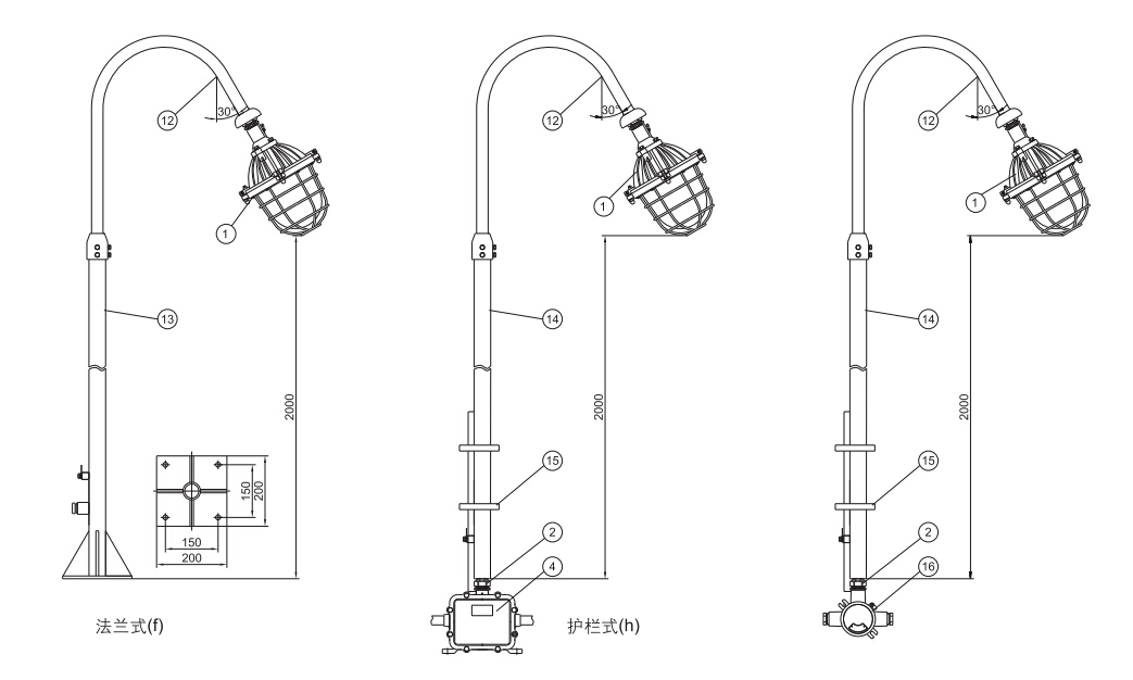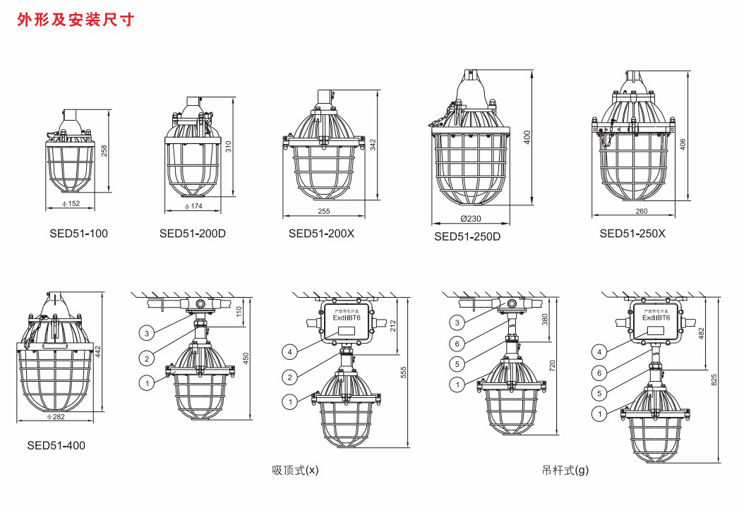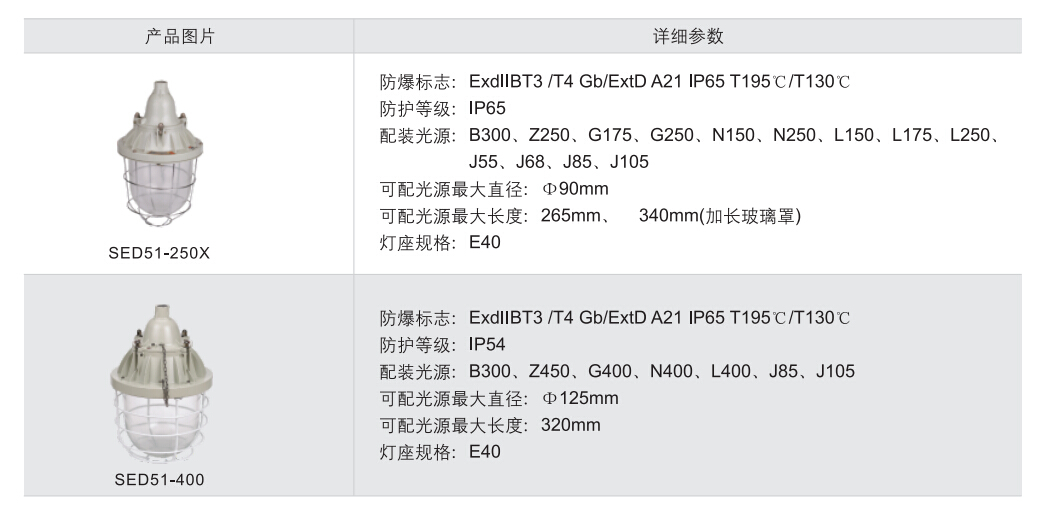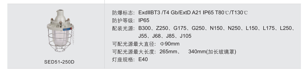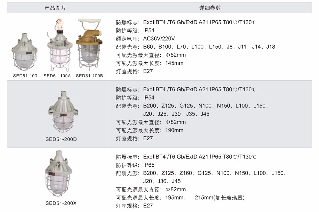 >灯具隔爆接合面设有“O”形密封圈,防水性能好;>保护网采用镀锌后浸塑处理,美观耐用,防腐性能好;