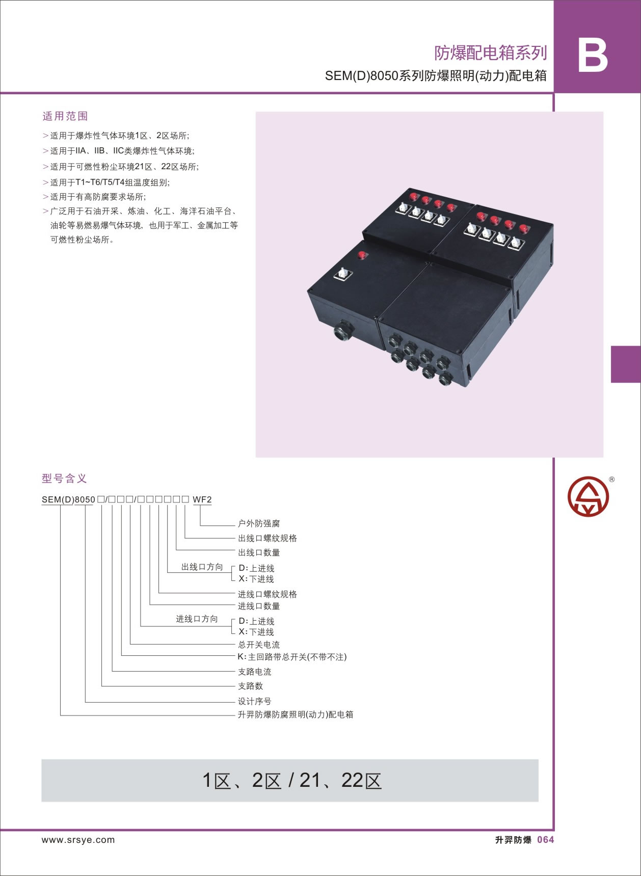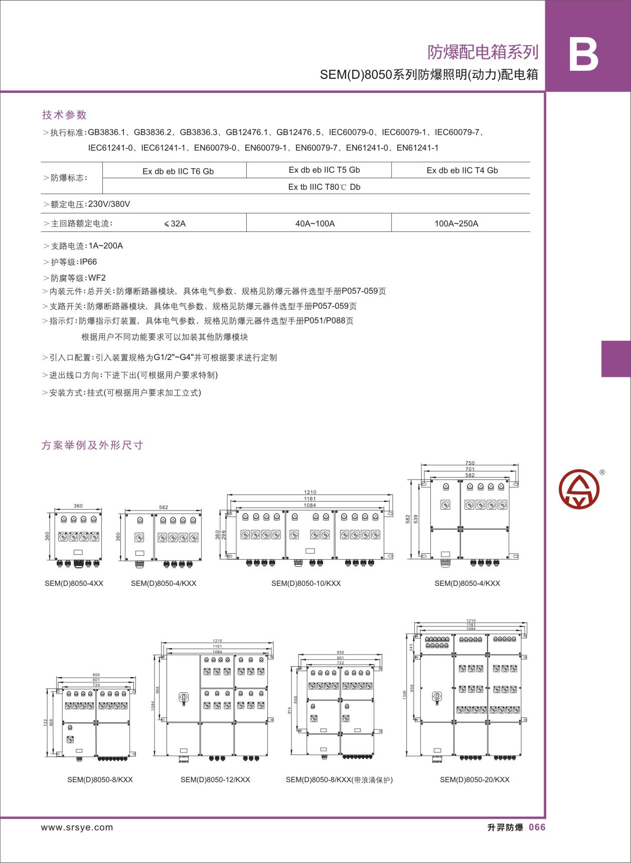 防爆标志: | ExdeIICT4Gb(80-250A) ExdeIICT6Gb(1-63A) ExtD A21 IP66 T80℃ |