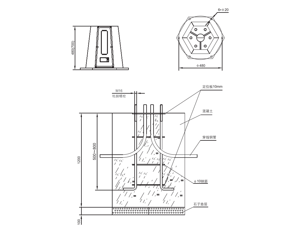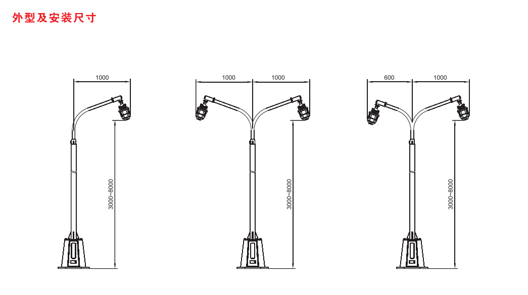 > I型马路灯由防爆灯具、灯杆、基座等部分组成,基座内置接线盒或马路灯专用镇流器;