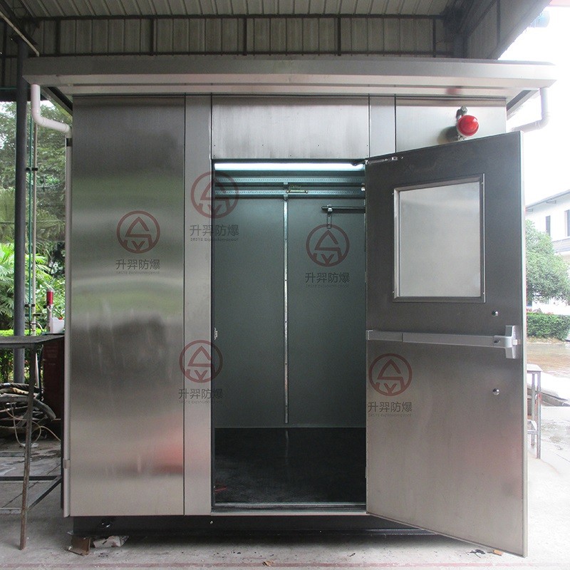 > 正压型仪表控制间采用型钢结构,内外墙均为钢板或不锈钢板,中间为隔热层;