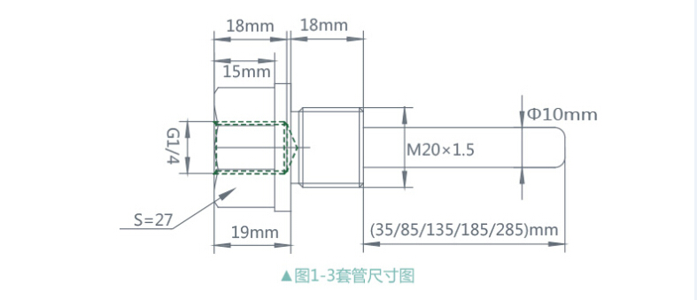 响应时间:不带套管18s、带套管55s(如需提高响应速度,可在套管内加入导热介质)