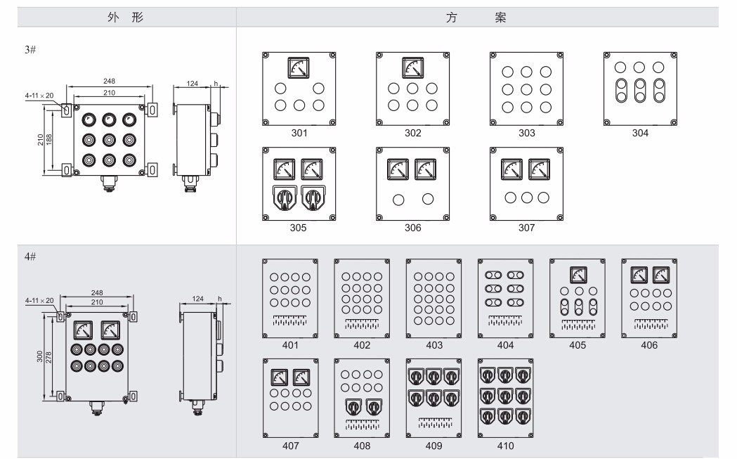 内装元件:防爆按钮、防爆电表、防爆带灯按钮、防爆指示灯、防爆开关